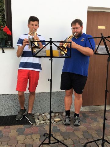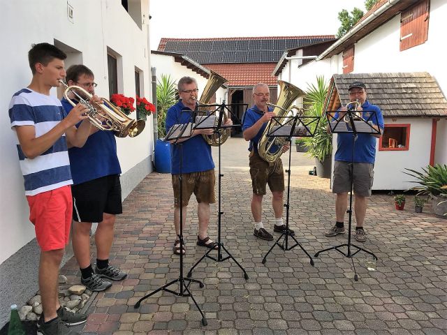 Daran konnte natürlich auch eine Abordnung der Blasmusik nicht vorbei – herzlichen Glückwunsch, lieber Karl!